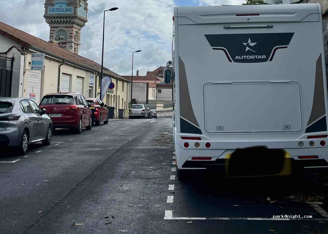 Quiet side street just off the avenue de Champagne. We parked here in our van for a night with no issues. The spaces are better suited to vans, they might be too small for a motorhome