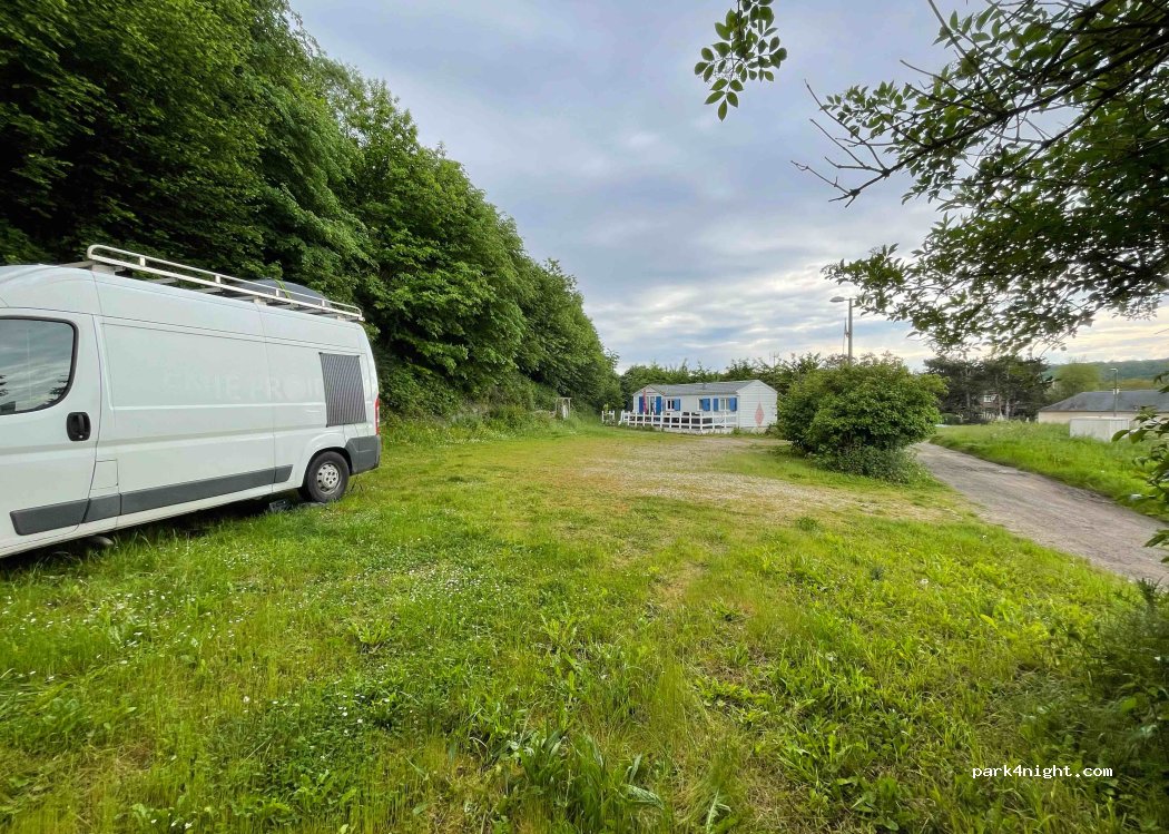 Free service area (with caretaker) with 72-hour parking for 6 motorhomes in a small park surrounded by a large hedge, pond 500 m away, satellite TV now possible.