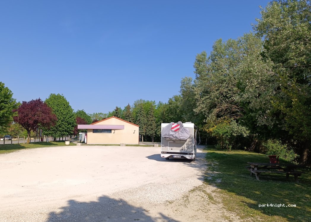 parfait pour une pause repas. spacieux et plat. la nuit doit être possible à voir si la route est bruyante ou pas.