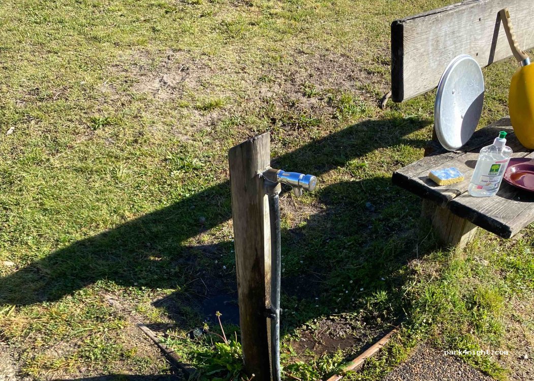 Robinet d'eau classique, ATTENTION le monsieur à l'entrée qui tiens une friterie est peu commode...beaucoup d insultes quand nous avons remplis notre bidon et douche solaire ( se plaignant qu il paye l eau :) )... nous avons continué à remplir sans le regarder malgré les insultes...il s agit pourtant de l'eau public. Spot à utiliser hors ouverture du snacking !