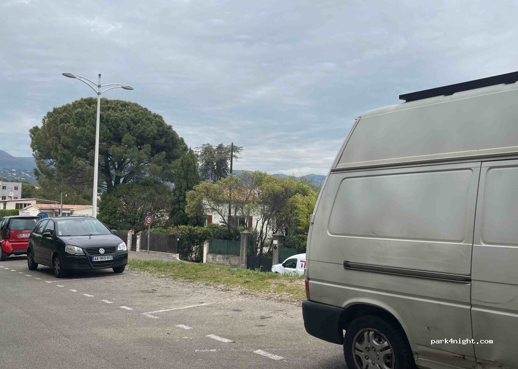 Si vous voulez accéder au centre commercial riviera en van ou calamine car, ils n’ont que des parkings de 2m ( pas très pratique ). Cette rue est en hauteur et proche du centre commercial, peu de place, mais au moins les long et haut véhicules rentre. Par contre, passe la nuit ici ne doit pas être très agréable car route passante à côté mais à tester