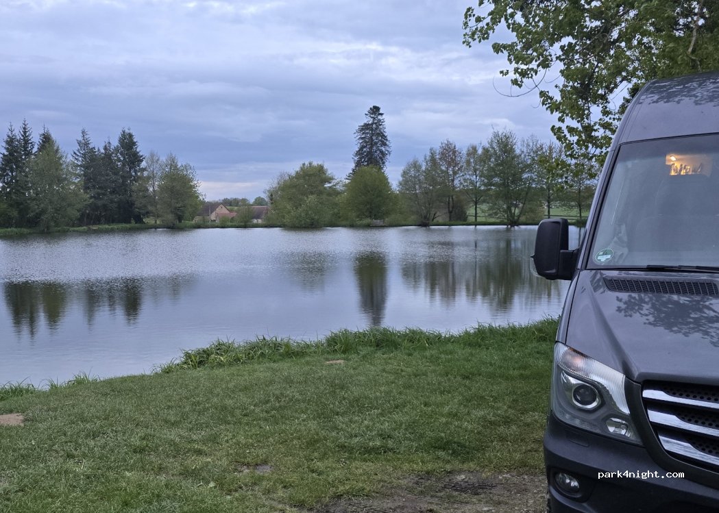 Très bel endroit, au calme avec une belle vue sur l'étang. Les vaches dans le champs juste à côté et personne, à peine quelques promeneurs dans la matinée.