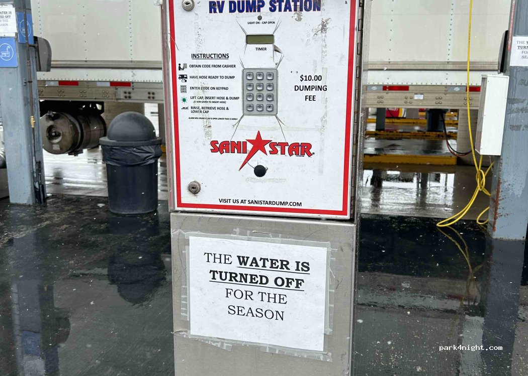 Gas station with supply and disposal. In April the water is still turned off but disposal is still free. You can also fill up with propane.