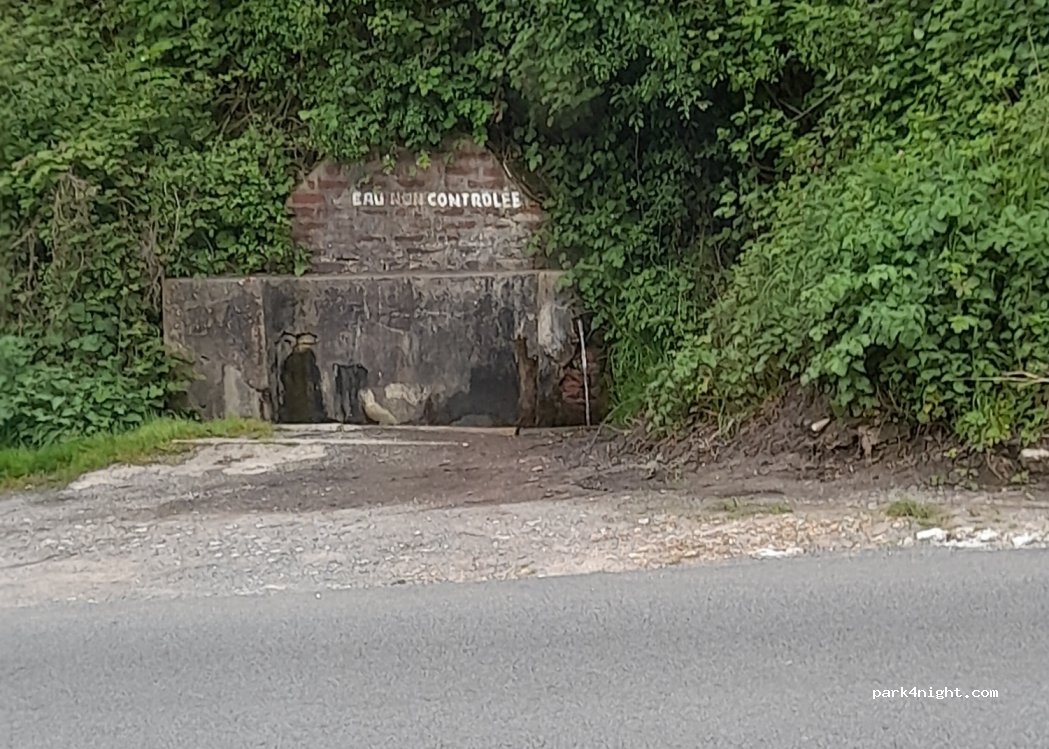 attention il n'est pas indiqué que c'est une zone de stationnement et pas de possibilité de remplir au tuyau. c'est une source près de la route donc il faut y aller au bidon. seul possibilité trouvé si vous n'avez plus d'eau en réserve