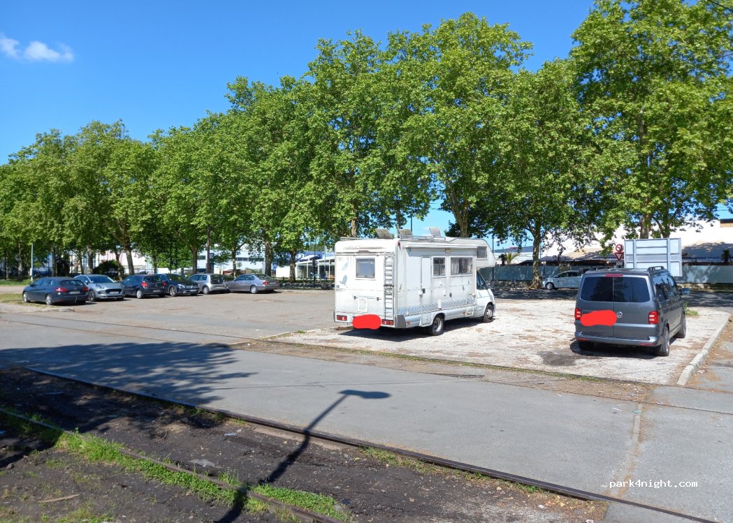 Ein paar Meter vom Eingang zum U-Boot-Bunker aus dem Zweiten Weltkrieg entfernt, BETASOM-Stützpunkt. Wir schliefen, nachdem wir Polizisten gefragt hatten, wer den Stützpunkt, heute ein Kunstmuseum, verlassen würde. Kein Verbot. Als wir aufwachten, stand neben uns ein kleiner englischer Wohnmobil. Ruhige Nacht. 3 km vom Zentrum entfernt.