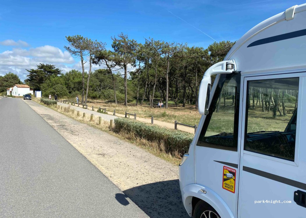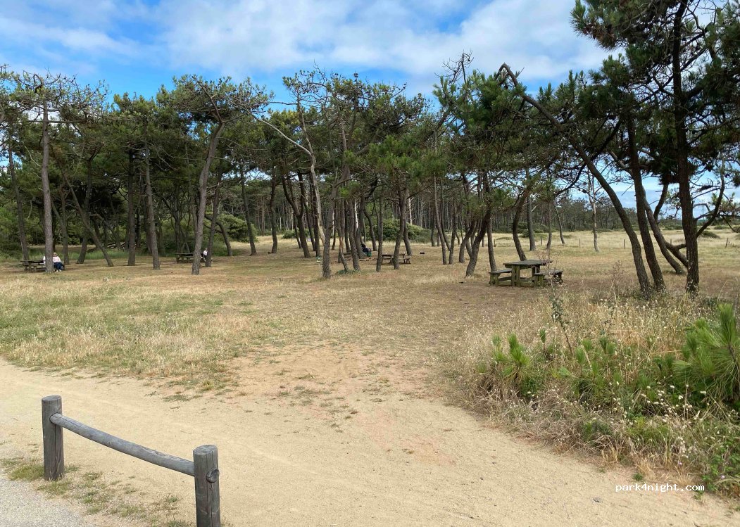 bel endroit avec table de pique nique sous les pins et à quelques pas de la mer. Plusieurs places disponibles si les voitures ne s'y mettent pas. Pas d'interdiction d'y passer la nuit.