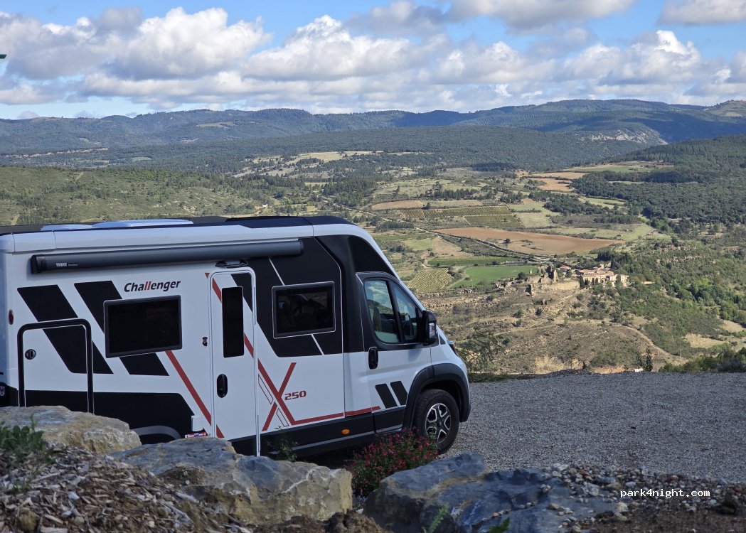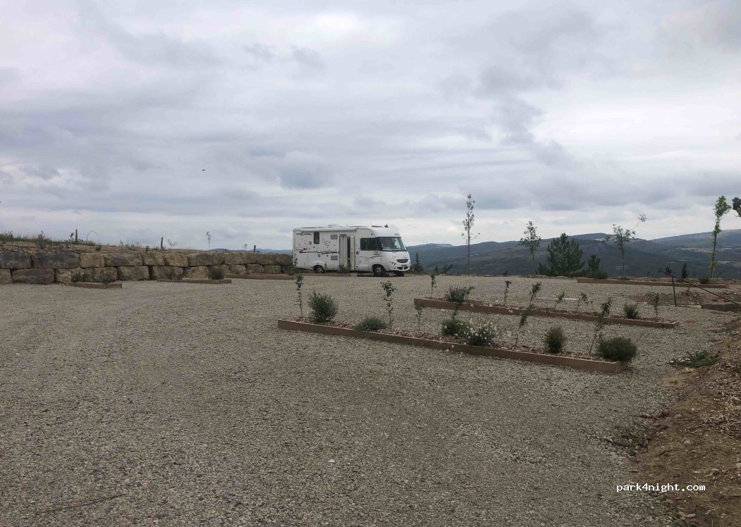 wunderschöner angelegter Platz mit tollem Blick und kleinem bezaubernden Ort, 4 x Strom vorhanden. Tag- und Nachtparkplätze abgetrennt. Achtung...Zufahrt zeigt Navi anders an, gleich rechts Berg runter...Fahrradtouren mit EBike in der Umgebung möglich. Geier kreisen über den Womos.