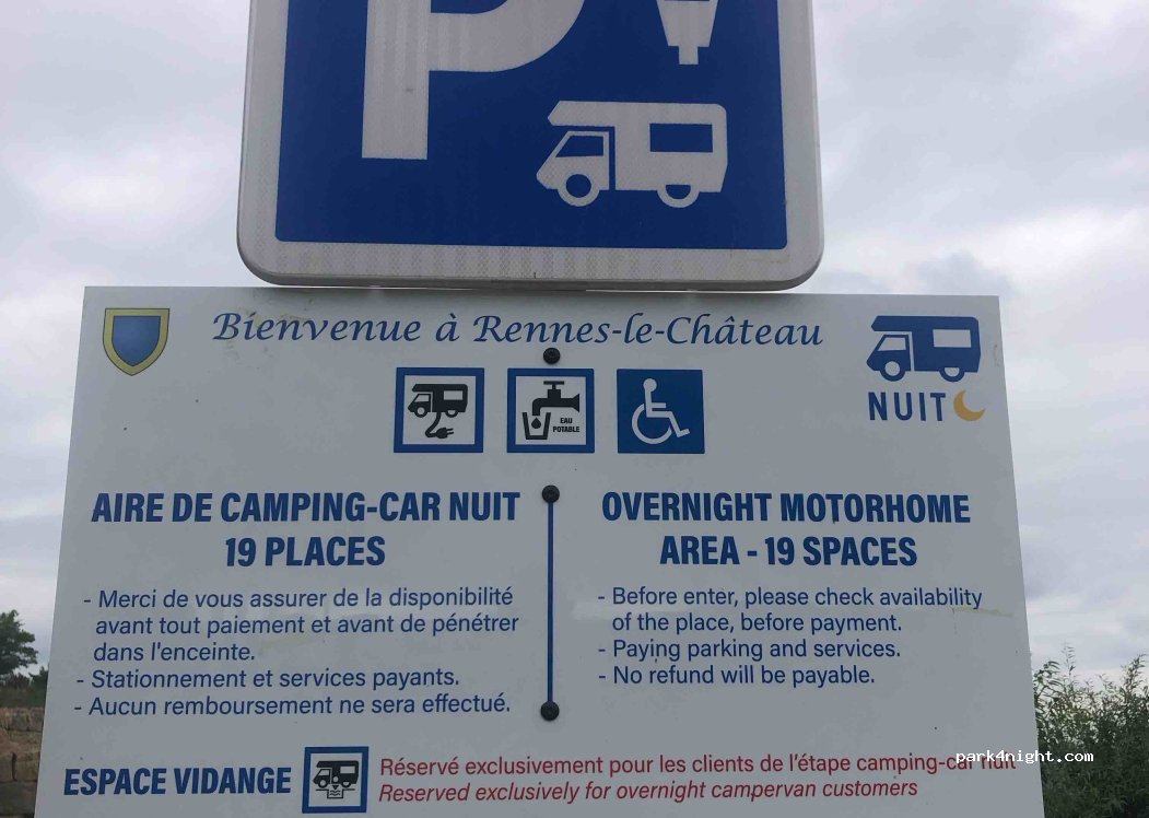 Aire de camping-car payante toute neuve avec tous les services disponibles. Elle se trouve au fond du parking jour et offre une très belle vue sur la vallée. Places assez larges et bien délimitées très légèrement en pente. Endroit agréable.