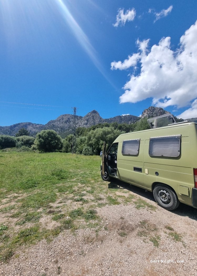 Parking super amplio, zona industrial, vistas a la montaña, zona muy tranquila para dormir...
