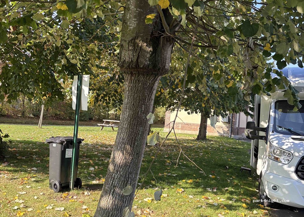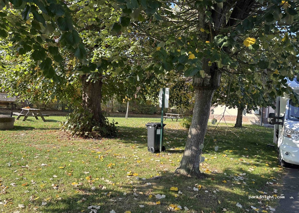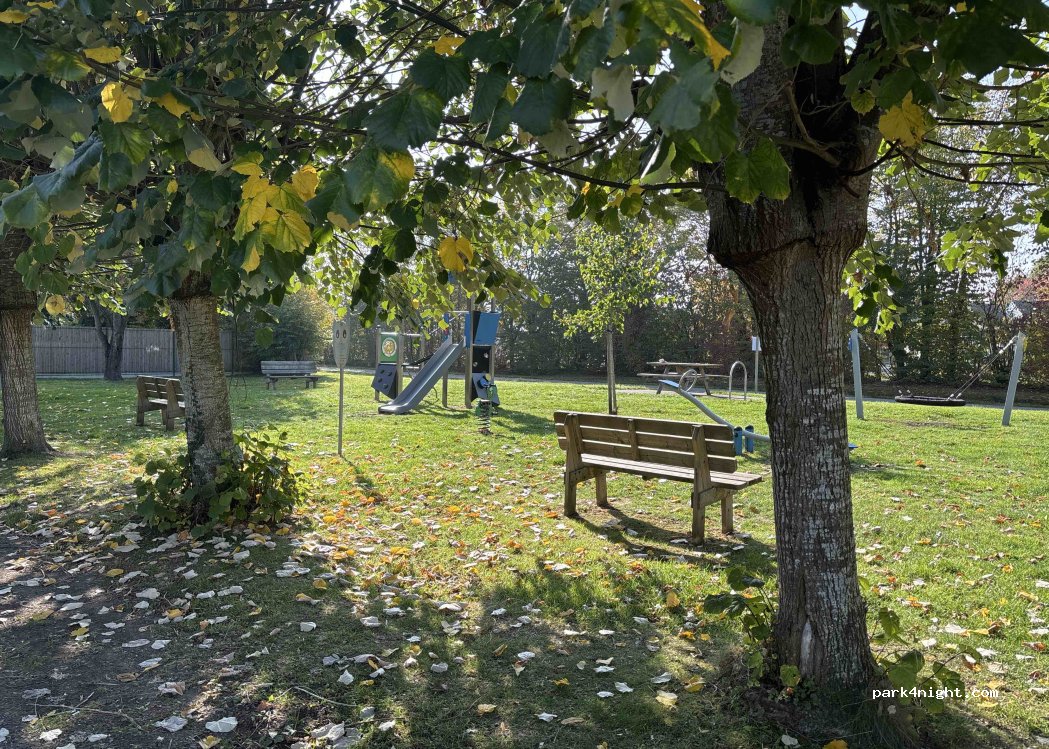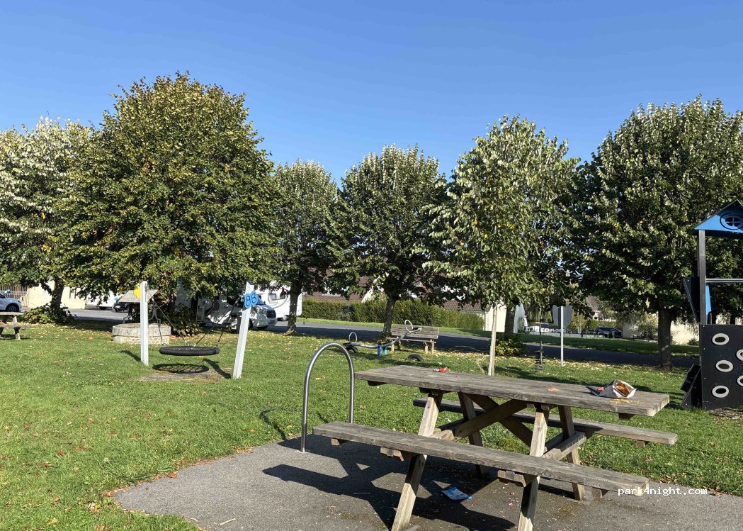 Parking avec aire de jeux et table au calme.