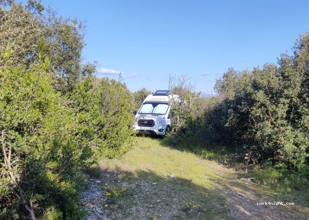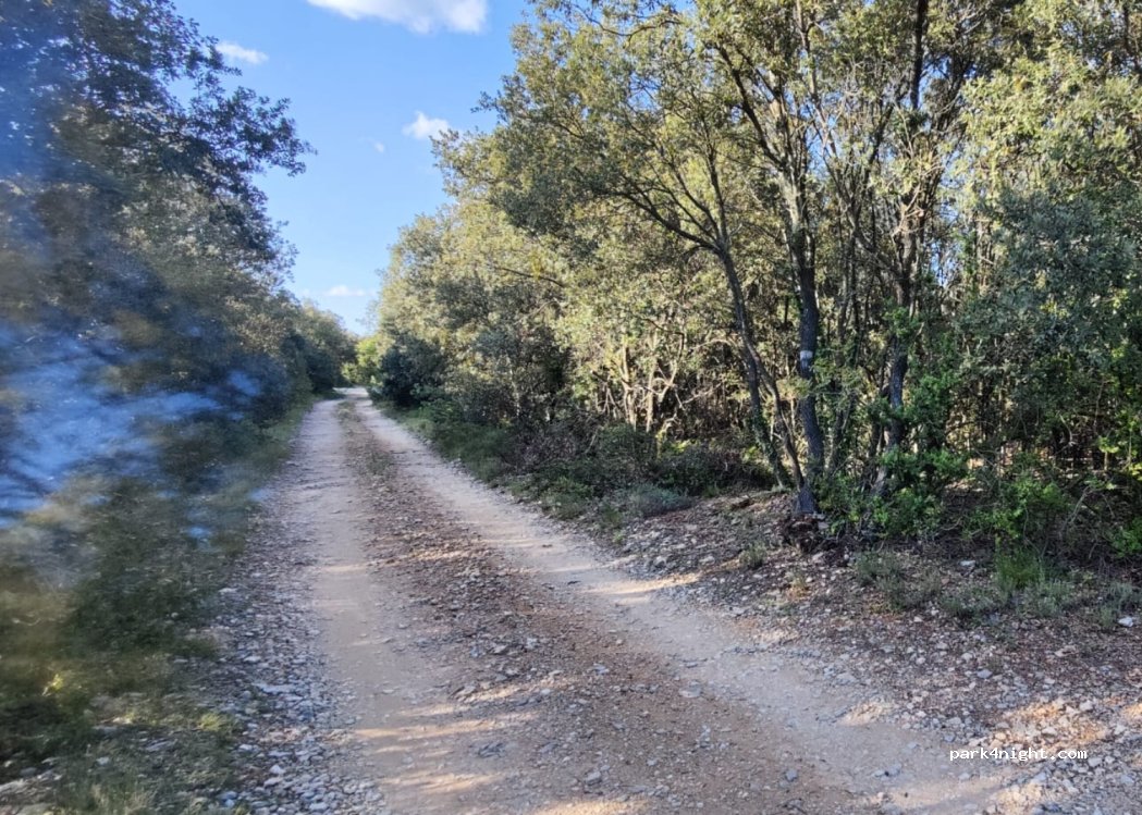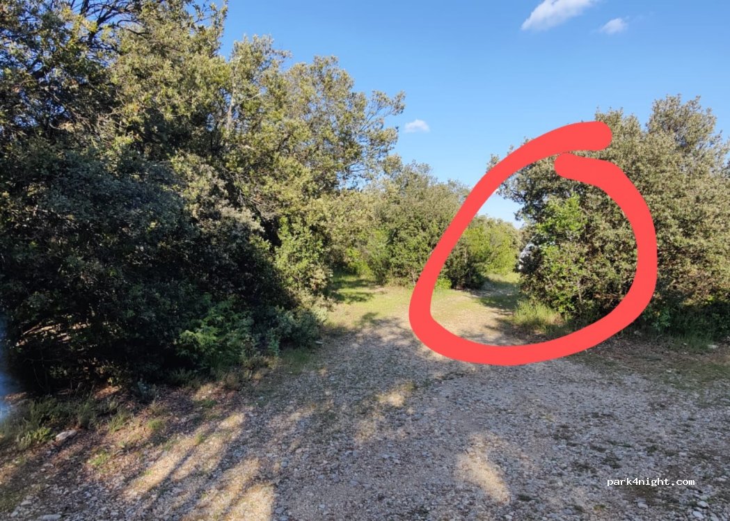 Petit coin très très calme en pleine nature en bout d'un chemin, accessible en van mais attention tout de même aux branches. Il y a une très bonne odeur de thym dans l'air.