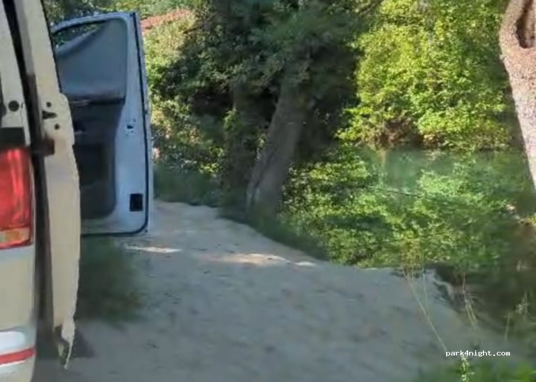 Öffentliche Parkplätze an nicht gekennzeichneten Orten. Schattig, ruhig und am Flussufer.