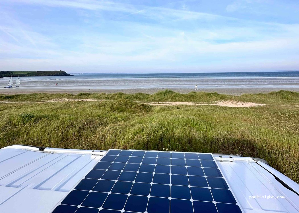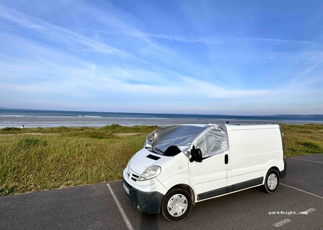 Joli coin, au bord de route, très peu passantes la nuit en cette saison, vu sur mer, les toilettes, et le point d’eau se trouve un peu plus loin sur le parking où il y a les camping-cars