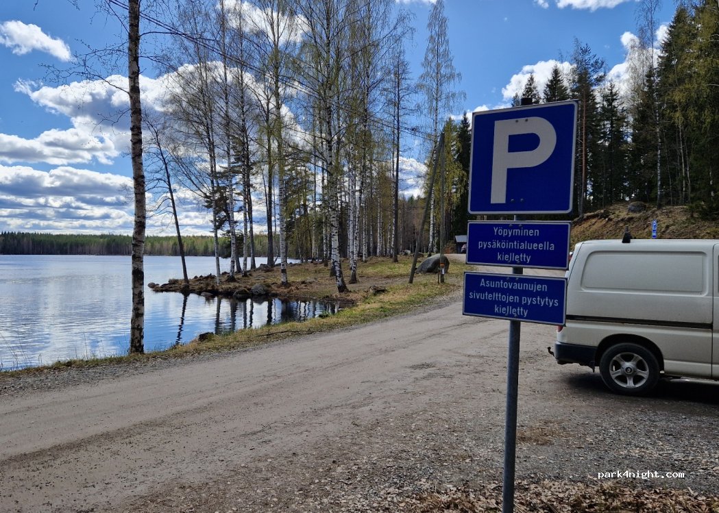 It is forbidden to camp or spend a night here (signs in Finnish).