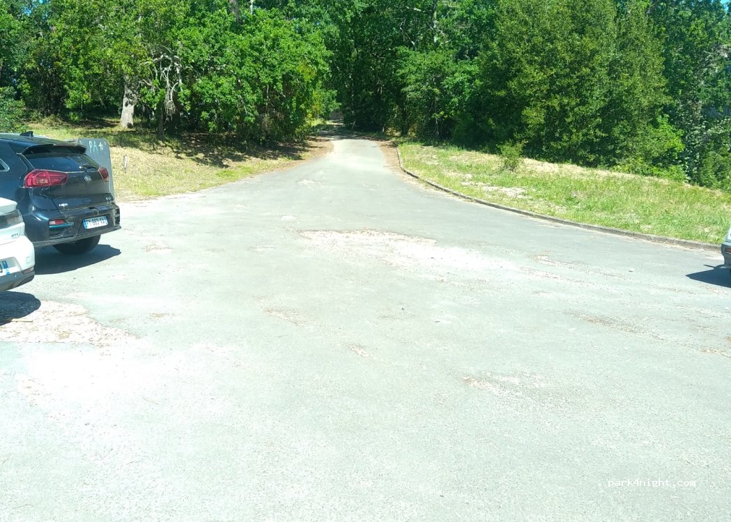Parking sous les arbres (bonne hauteur), juste après ou avant l'hôtel du parc, suivre le parking des tennis, terrain pas très plat, plage à 10 minutes à pied.