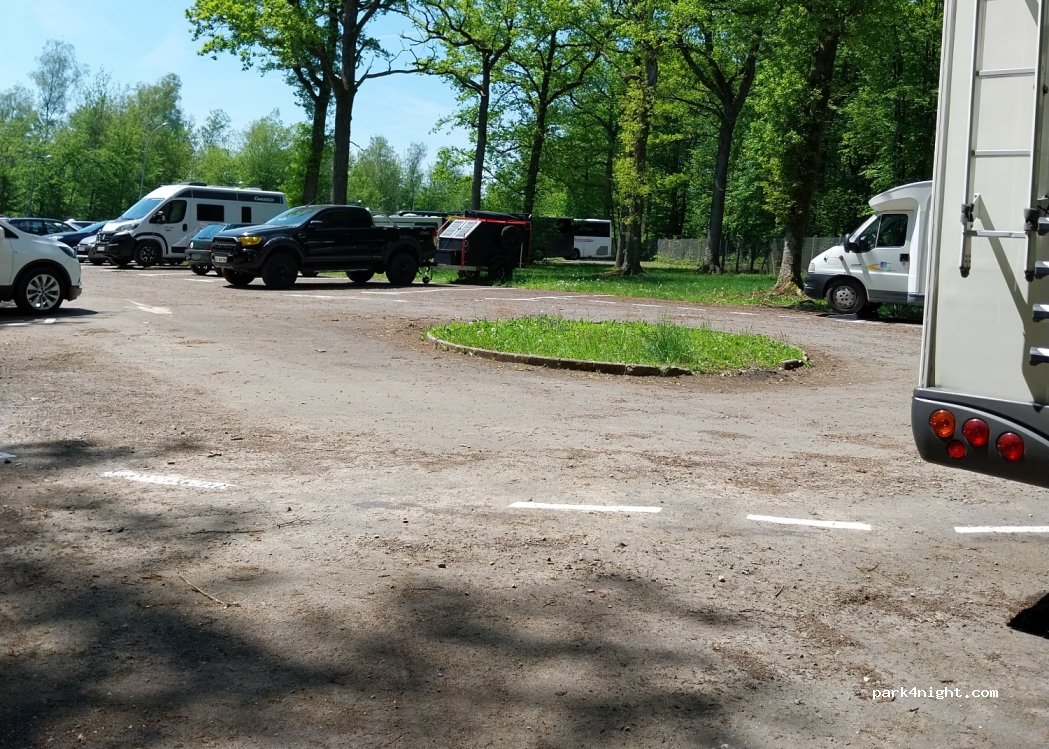 Am Ende des Parkplatzes, am Kreisverkehr, ist es schattig.