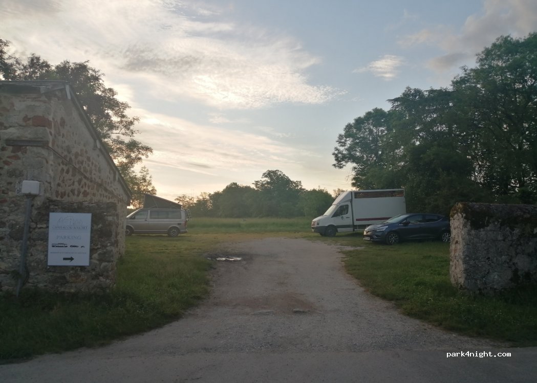 Arrivés après l'heure de fermeture des visites du château, le parking est vide. avons passé la nuit seuls, nuit très calme et paisible, route peu passagère, après 19h30, il n'y avais plus de passage de voiture.