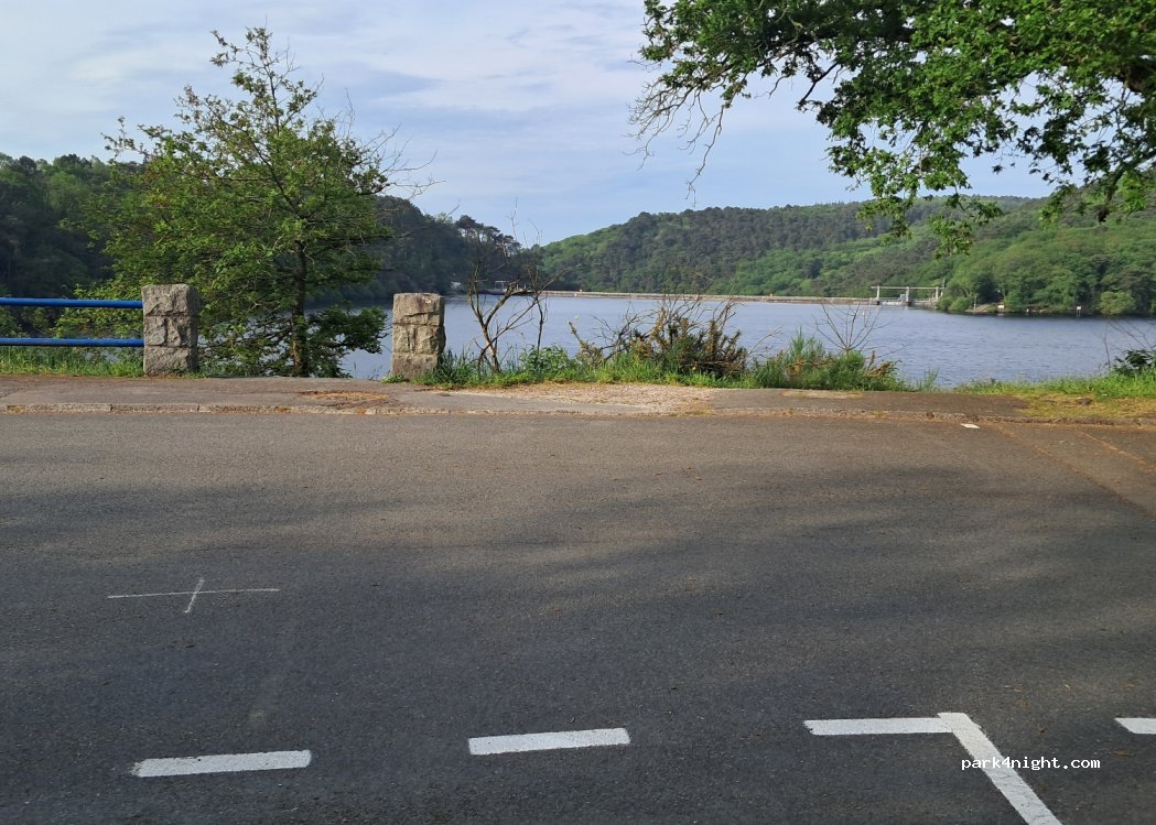 On y est que pour manger à midi. C'est calme. On entends au loin une route... Quelques voitures se garent pour les départs de balades. Horizontal, pas de panneau d'interdiction en effet. 3 places le long du lac permettent d'avoir une vue directe sur le lac.