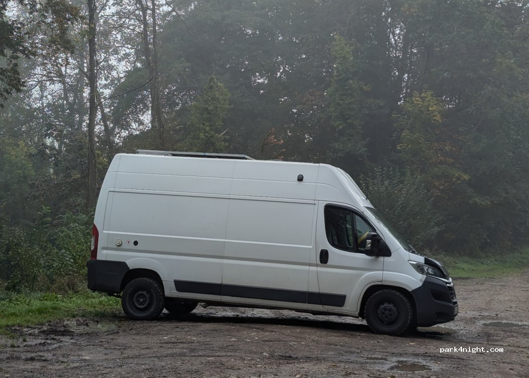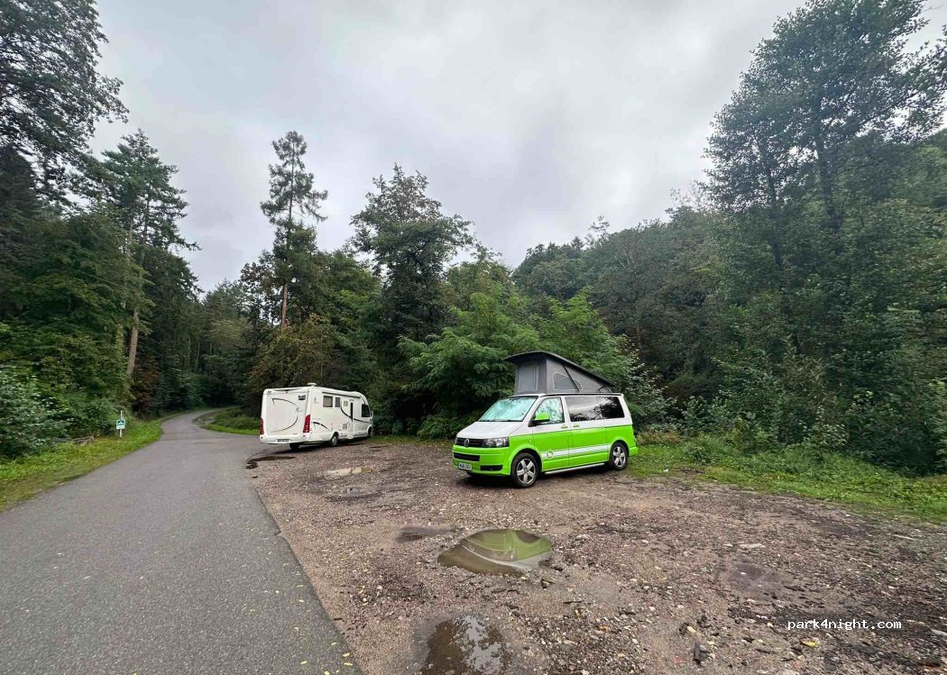 3 parkings les uns après les autres le long de la route peu passante. nous étions à celui de l'etang de pêche . nuit tranquille dans les bois. bien pour de longs Camping car