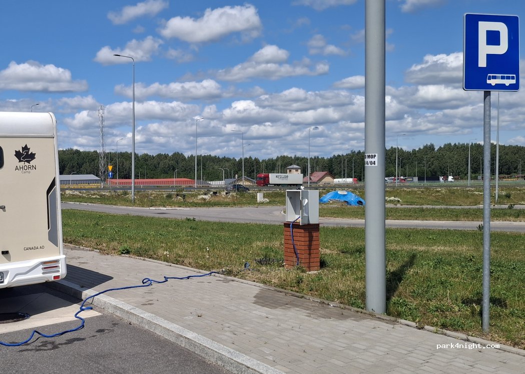Yra visas servisas, galima nuleisti tiek black vandenį, tiek grey vandenį, pasipildyti švaraus vandens. Darbuotoja labai paslaugi, atrakina, palaukia. Nakvoti čia nelikome, arti autostrada.