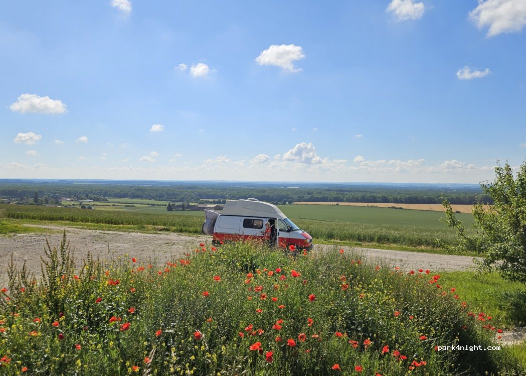 Spot calme avec une vue imprenable sur les champs ! Peu de passage sur la route qui longe le lieu, je recommande pour une nuit :)