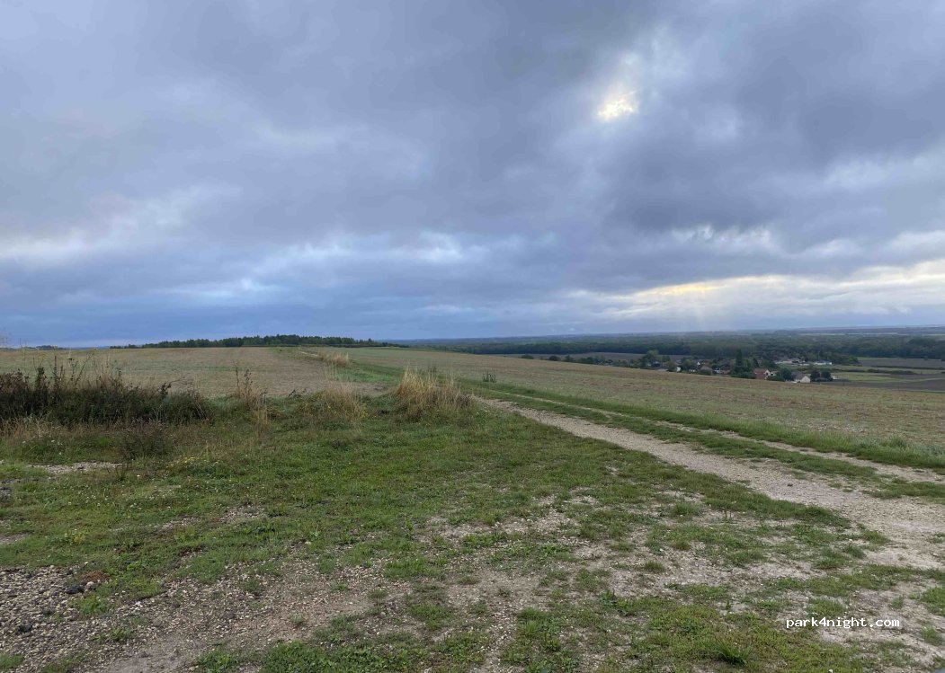 Very quiet place in the fields, with a nice view on the woods. Easily reachable with a few hundred meters of dirt track, only about 8 km detour if you pass by Troyes. Visit this spot for absolute peace and quiet!