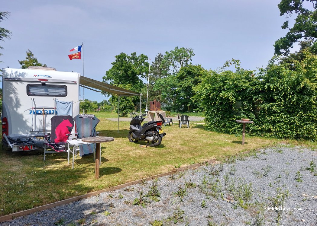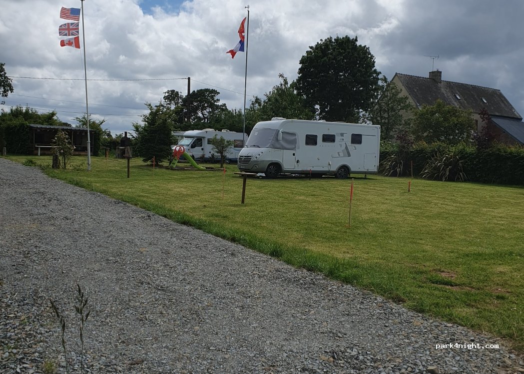 spent two nights 10-12th of July, drove there and asked if we could park. super friendly hosts, only spoke french but we made it work with a app! place to charge phones, waterboiler, microwave, toilet, kitchen, shower. Bought eggs, cider and croissants for breakfast to good price! second night was a celebration(probably nationalday thing). Really recommend a stay!
