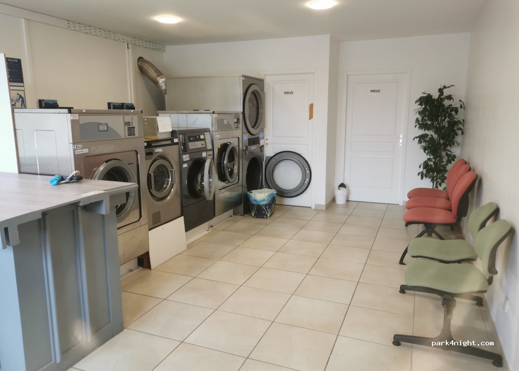 Laverie automatique, petit, sympa, lessive bio inclu. Petit magasin bio juste à côté. Assez d’espace pour se garer.