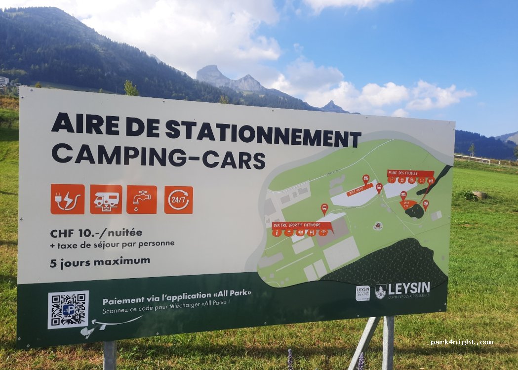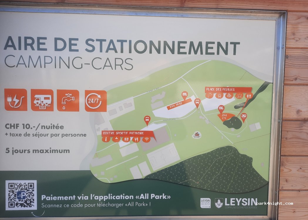 Area di parcheggio estiva. si tratta sempre della stessa area sosta del comune di Leysin. CHF 10 per notte cc 1 persona. persone aggiuntive 3,80 chf