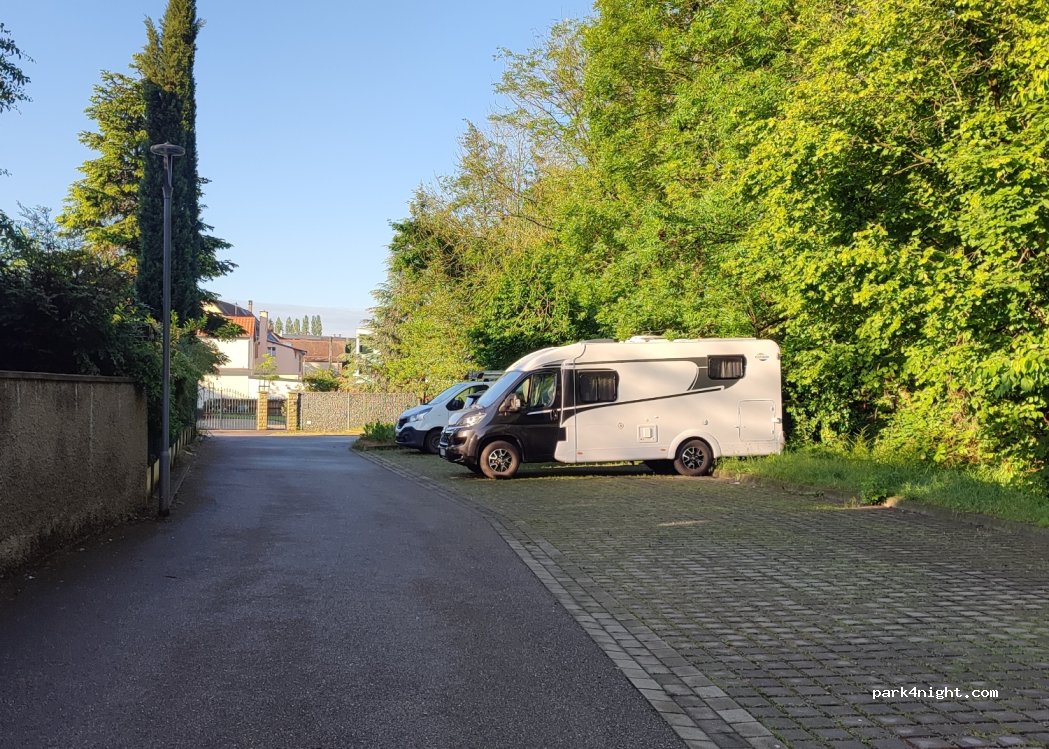 Parking goudronné dans une impasse, au bord d'une rivière, adapté aux camping-cars. Boulangerie à 2 minutes à pied, piste cyclable. On s'y sent en sécurité.