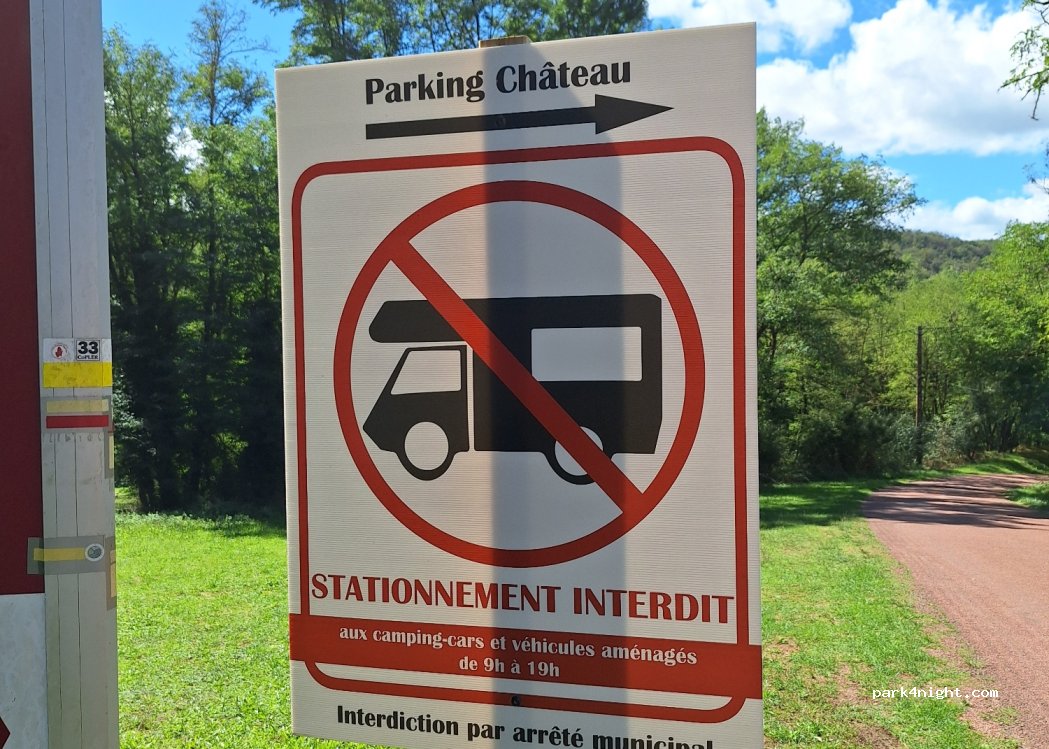According to a response from the château to a recent Google review, it seems perfectly possible to park your van or motorhome during the day, BUT ONLY if you're visiting the château ;)
