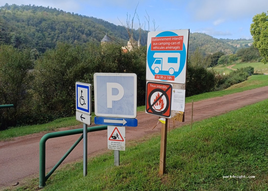 Overnight parking only! Near the Château de La Roche, this monumental parking lot accepts campervans and motorhomes only from 7 p.m. to 9 a.m. the following morning.