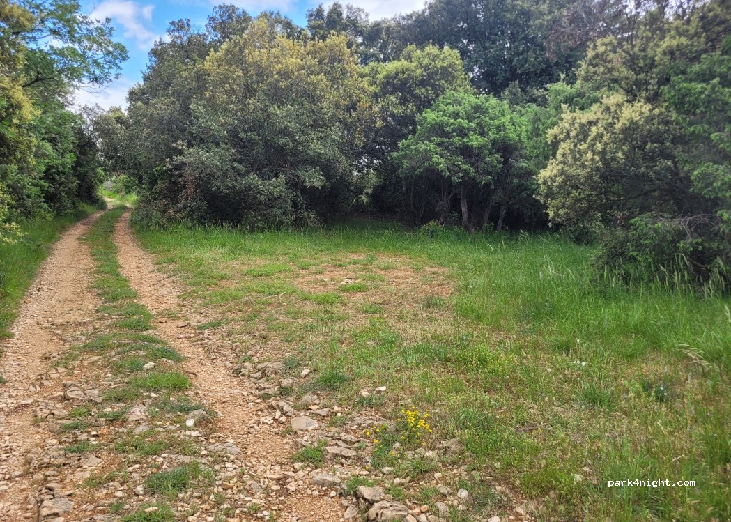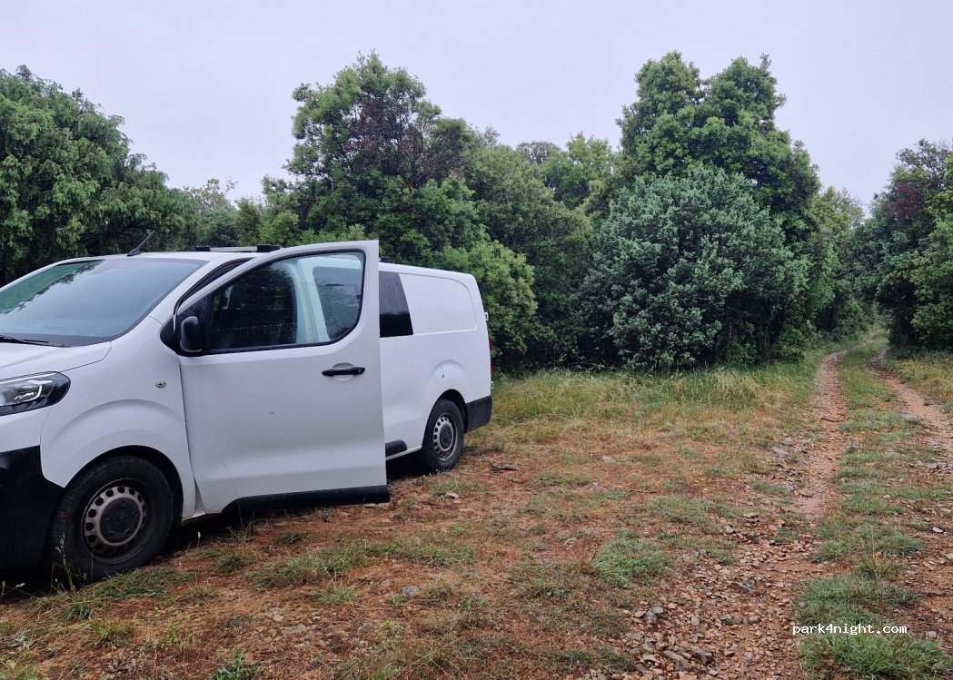 Super petit coin isolé à l'entrée d'une piste de randonnée. On entend quand même les voitures mais ça reste léger. nous devions aller voir la grotte de Chauvet 2 qui est juste dessous donc parfait pour une nuit. Présence de taon. Merci de respecter les lieux,car les lieux n'étaient pas très propres autour. Couche de bébé papier toilette c'est dommage.