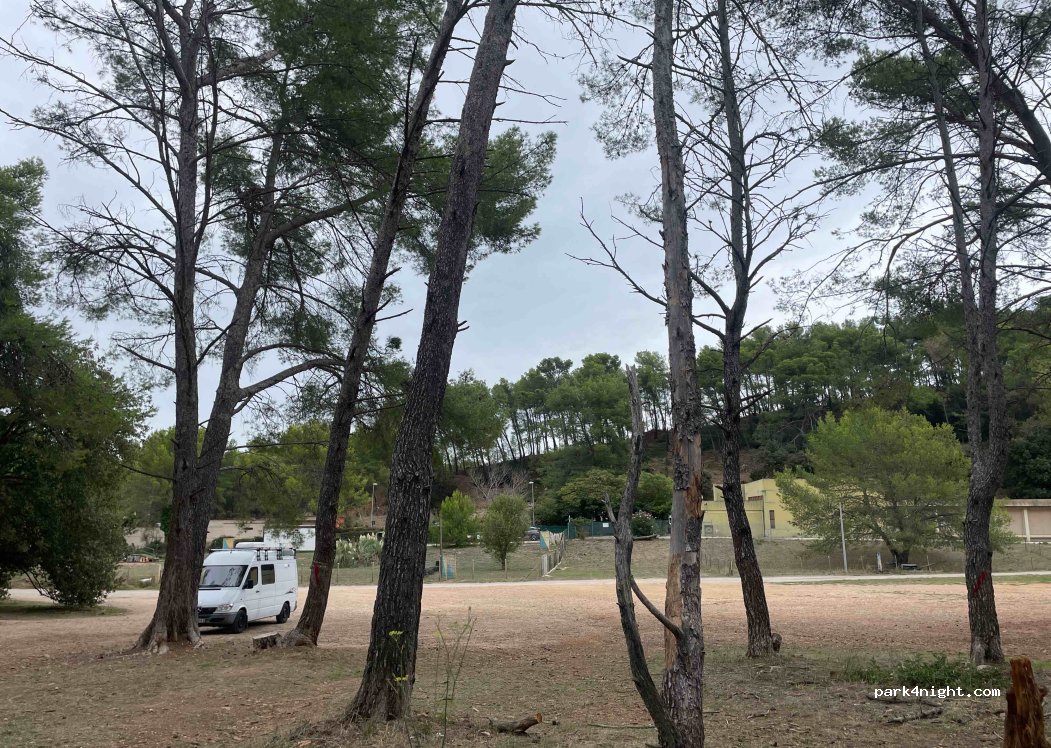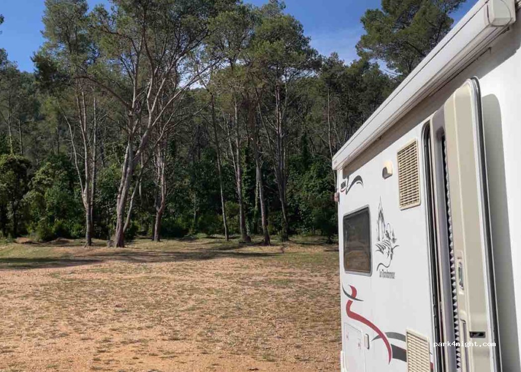 Grand parking du centre de vélo et de sentiers de La Maunière. Nombreuses places de parking le long de la route, dans les bois, où vous pouvez passer la nuit. La base militaire est juste à côté (clôturée), mais il n'y a aucune restriction. Nous n'avons eu aucun problème pendant la nuit et c'était très calme, sans beaucoup de circulation.