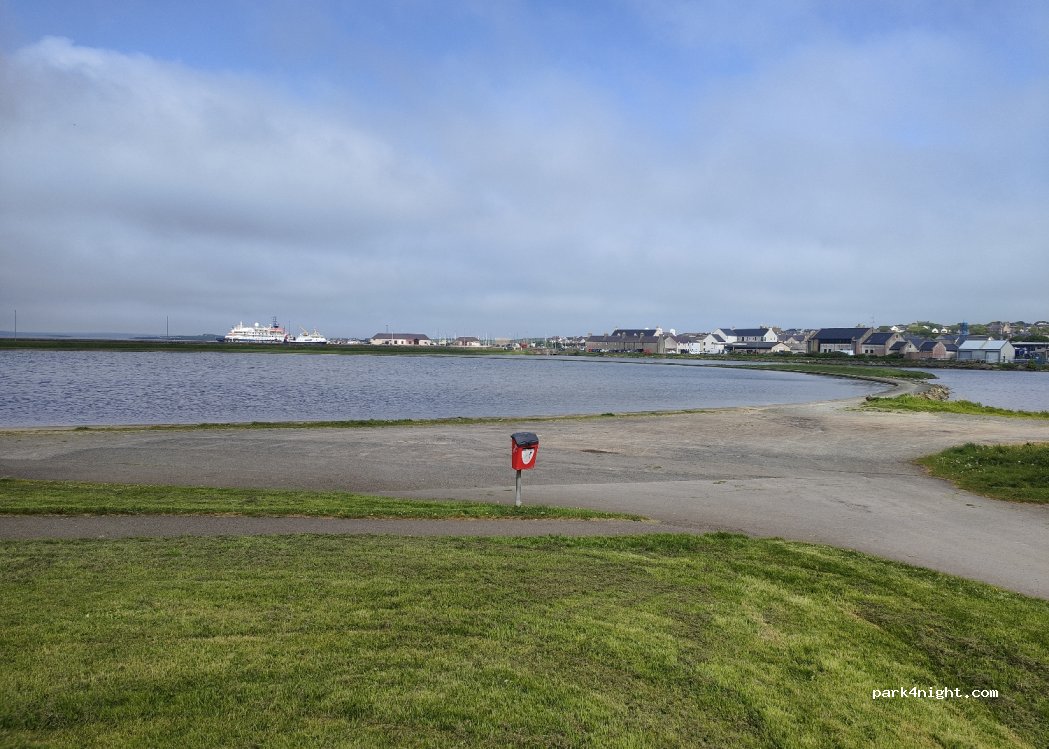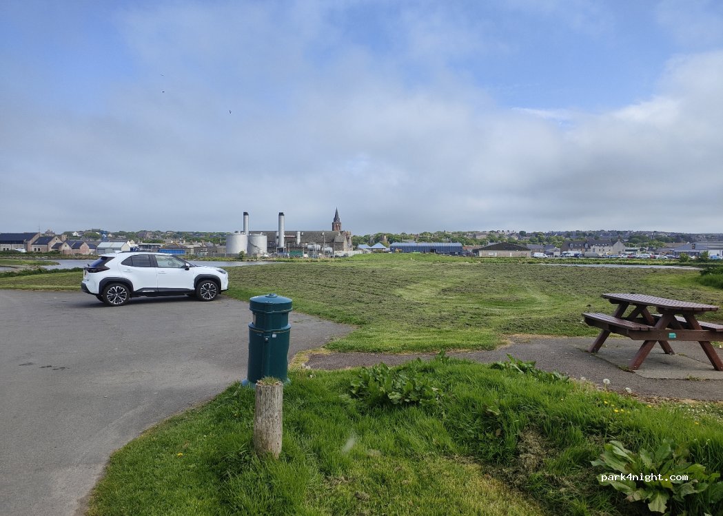 As Manikow says, this is not a place for motorhomes. This is a public park with walking spaces and a small hard standing area intended for groundskeepers to use for offloading their machinery. When they find motorhomes parked in their workspace, they can be less than welcoming.... Better off with the designated motorhome spaces in the nearby parking lot opposite Tesco