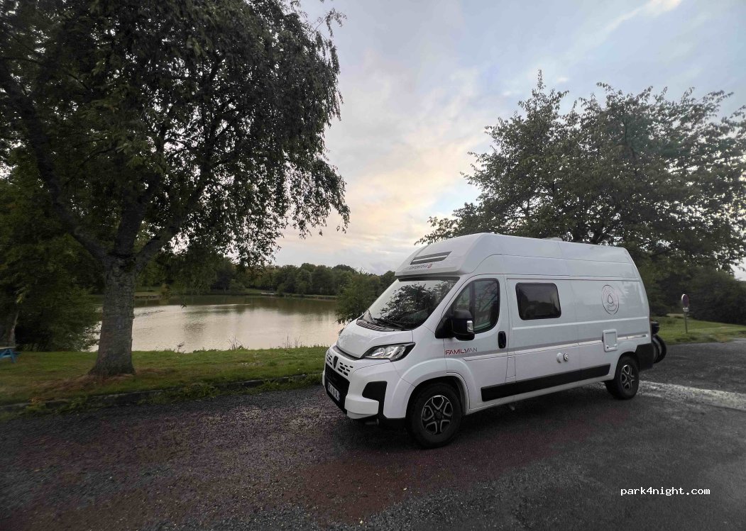 Bel endroit et très calme ! Places autour de l'étang légèrement en pente et accès au parking en contrebas inaccessible car fermé par une barrière ! Poubelles et aire de jeux ainsi que des tables de pique nique ! Idéal pour les enfants et /ou animaux ! Attention ni déballage ni détritus car passage du garde champêtre peu sympathique même dimanche matin ! N'ayons rien à nous faire reprocher pour garder des nuitées possibles sur ce joli site