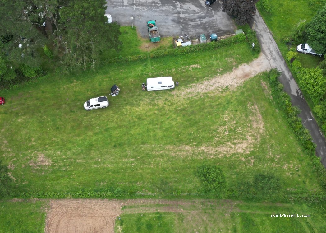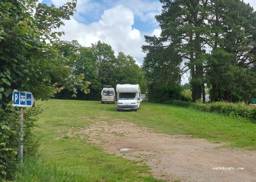 attention l'aire en herbe n'est pas utilisable en période humide, j'ai failli m'enliser 2 fois en camping car de 6 m. j' ai passé la nuit sur le parking goudronné en dessous légèrement en pente avec calles.
