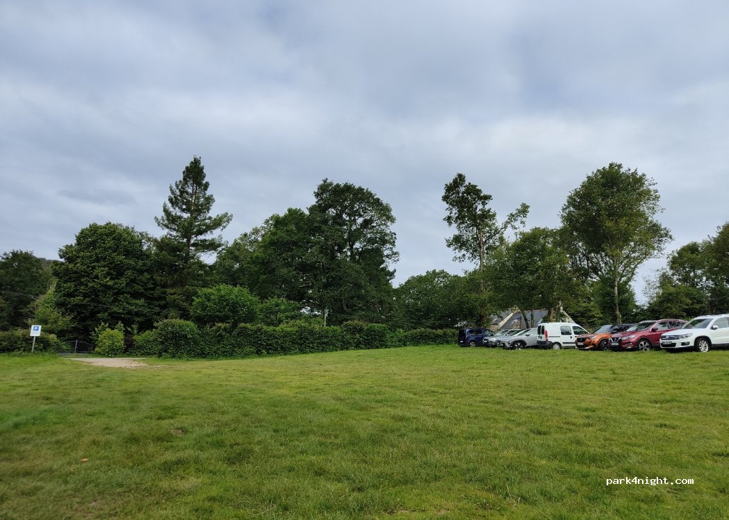 Occupying a lovely position overlooking the port & the river with a restaurant/bar within 100mtrs. The grass parking is on a steep incline on all but the bottom of the field. We were able to park at the bottom, side on as it was quiet, but would adjust that during busier periods to considerately accommodate more vans on the only reasonably level area. Thanks to the port for this provision.