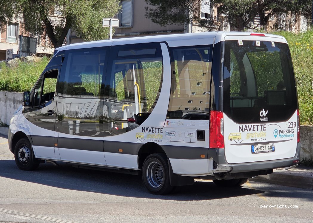 Signposted as Parking Miséricorde with navette and easy to find and access in 7m van. We had a quiet night parked at the top of hill where it’s flat - room for 3/4 vans but area called P2 to the right on entry on top deck of multi-storey with external road access also work well. Huge car park on empty hospital site - ideal for city visit. Pay and display. Dogs need a muzzle in navette.