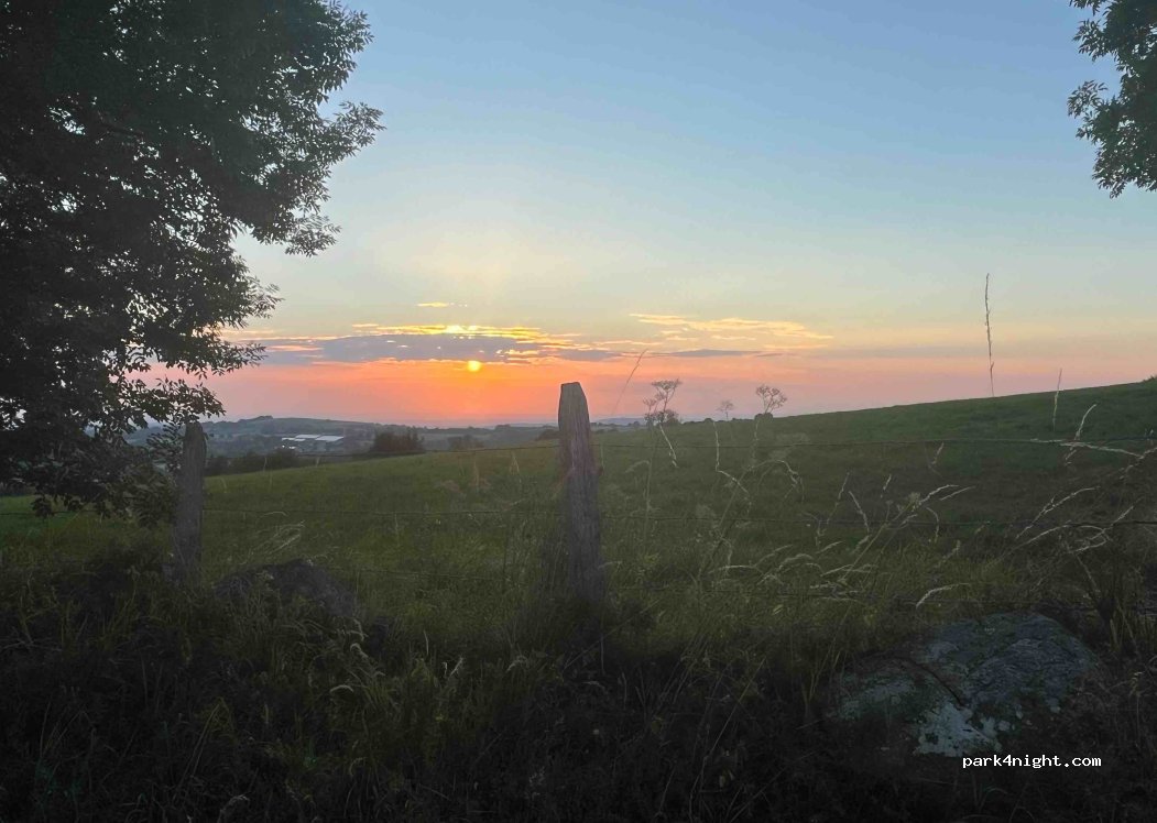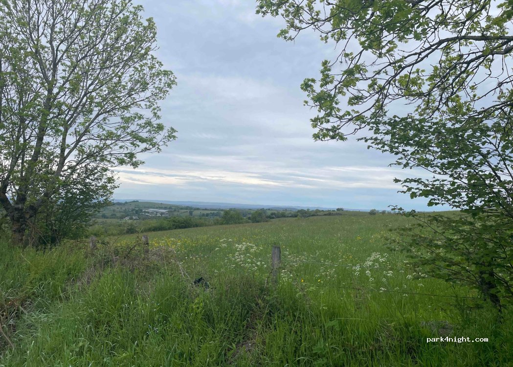 Spot calme en bordure de route peu passante, sur un chemin sans issue. Jolie vue dégagée sur la campagne environnante.
