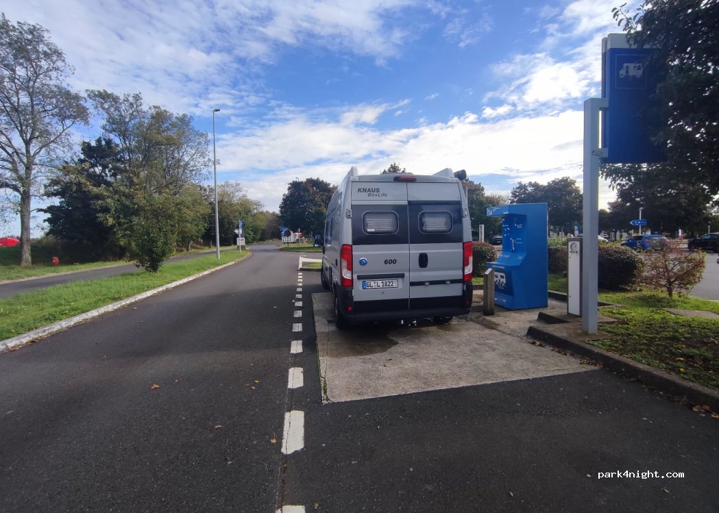 Idéal pour les nuitées en déplacement ! Y compris le service camping-car avec entrée au sol est situé sur la voie menant au parking et juste à côté de la station-service TOTAL | Il y a également de la place pour les grands mobiles/remorques à l'arrière (accès par le rond-point). Des toilettes propres, une boulangerie dans le magasin et un endroit calme pour passer la nuit. Machine gratuite (bleue) pour l'eau douce (commodément avec une buse), élimination des eaux grises et noires, le tout en un seul endroit.