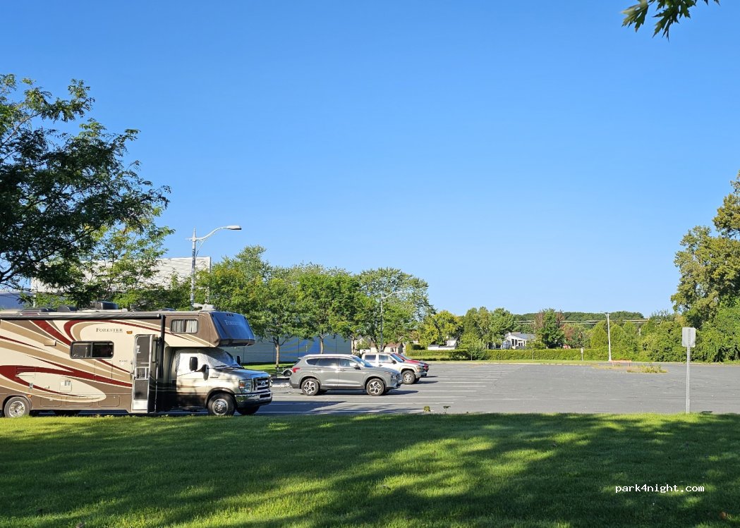 Nous y avons passé 1 nuit super tranquille et superbe vue au réveil. Les gens sont sociable. Vidange, crème glacée, dépanneur, cantine à 1 rue environ de ce stationnement.