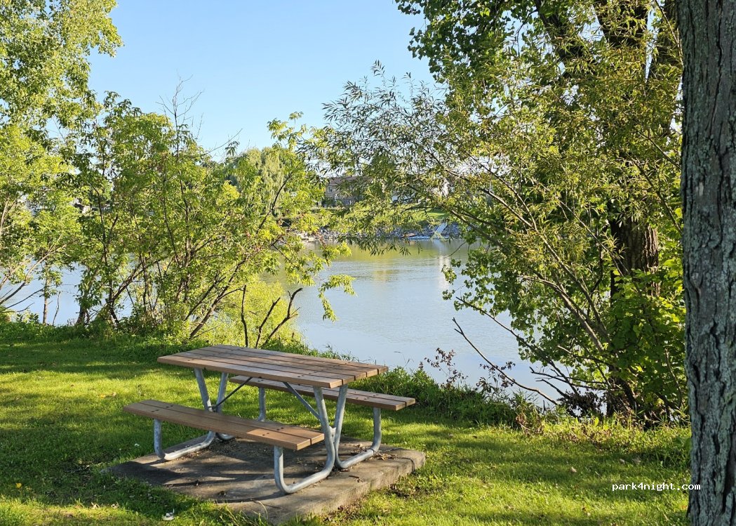 Stationnement, tables de pique-nique et Descente pour bateaux. Bord de l’eau, rivière Richelieu et tranquille. Beaucoup de pêcheurs, gens hyper sociable. Crème glacée à 5 minutes à pied. Piste cyclable à proximité.