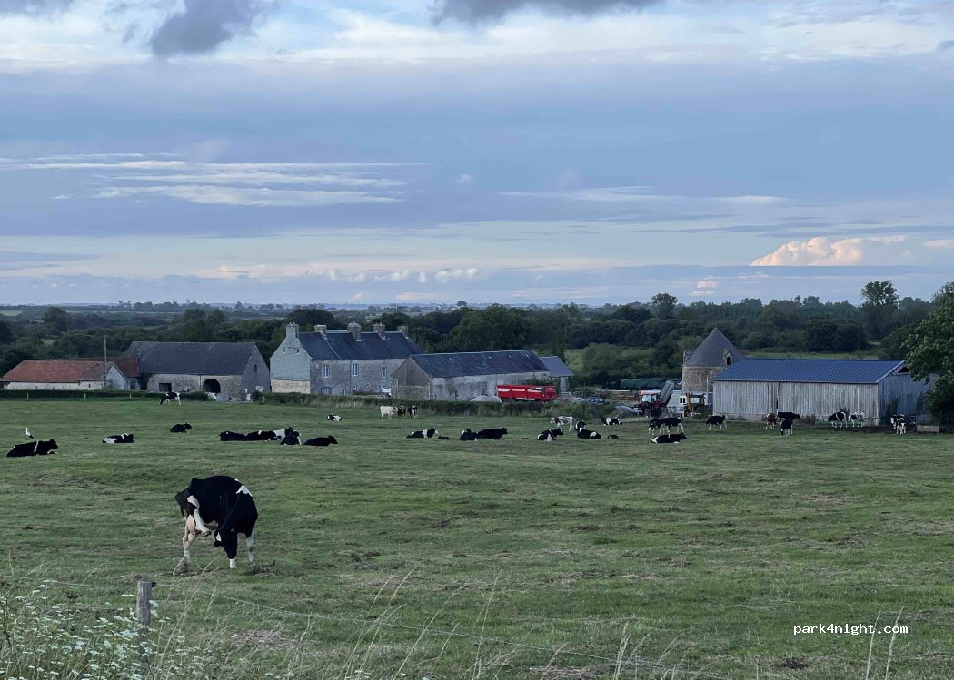 Super accueil pleine campagne au milieu de site du débarquement. l'eau, le WC très propre, l'électricité au milieu d'une ferme. joindre Ben vous ne serez pas déçus.