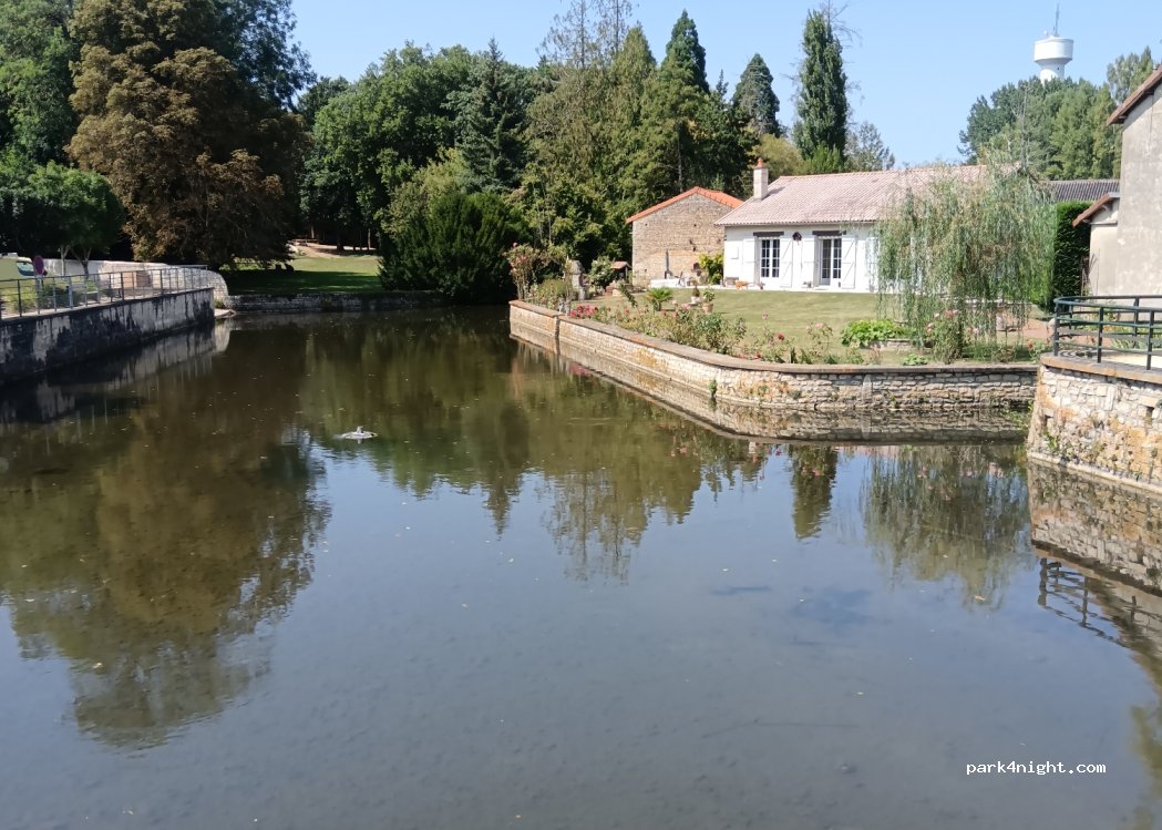 Parking gratuit, super avec emplacement herbe derrière, belles promenades aux alentours, restaurant tres bien Juste a côté, très beau village . Merci a la commune de Vouillé.