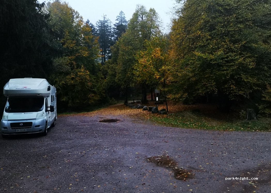 Endroit très tranquille au milieu de la forêt...Très bien placé pour les départs de randonnées...Pas de poubelles donc merci à tous de bien vouloir emmener vos déchets afin que ce lieu reste disponible...Aucun bruit pour une nuit reposante...Chemin un peu cabossé et étroit plutôt un spot pour les vans...