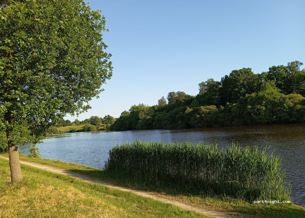 Parking partagé avec les voitures,ballade autour du plan d'eau. Il n'y a pas un chat la nuit , pour les gens inquiets allez plutôt sur le grand parking à la sortie du bourg près de l'école en direction de la Merlatiere .