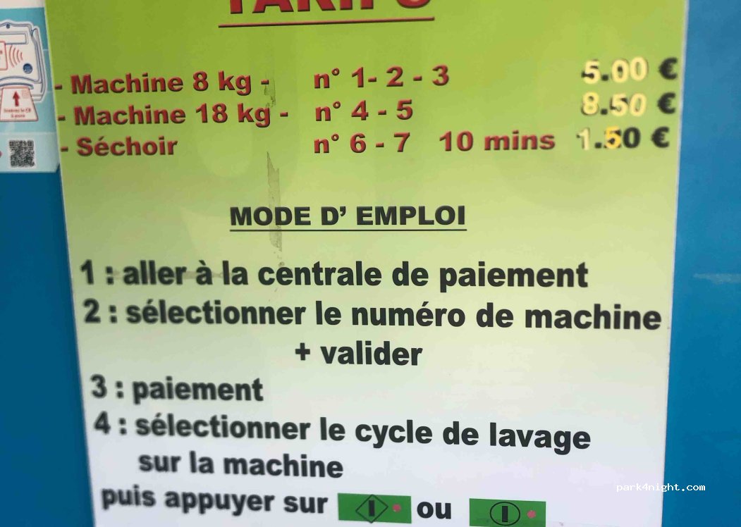 Toller Waschsalon direkt am Hafen mit Parkplätzen direkt vor der Tür. Haben Bilder hinzugefügt mit den Preisen und Parkmöglichkeiten. Waschmaschinen und Trockner sind super. Waschprogramm 37min und trocknen 10min. Möglichkeit Waschpulver für 1€ vor Ort zu kaufen.