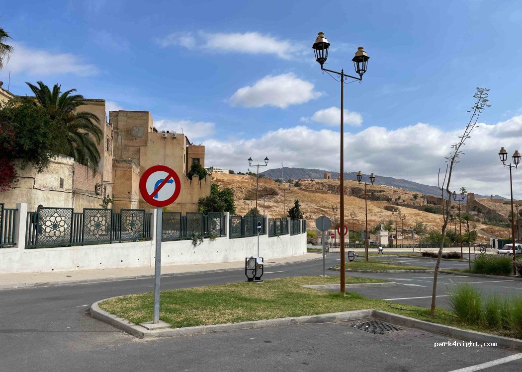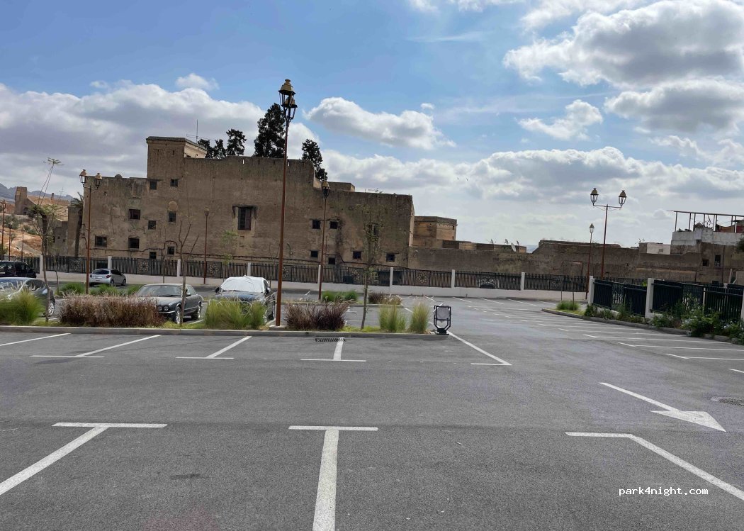 Hemos estado en 2 parking de pago cercanos. Los dos están muy bien. Mejor que el parking de tierra de Av. R501 Éste peor nivelado, w.c. alejado y poco accesible (llaves en la garita). Tranquilo de noche Mejor acceso desde aquí a la parte superior de la Medina, Medersa Bou Inania (única mezquita visitable), Bab Boujeloud y Palacio Real Cuidado con el techo de la garita de pago al salir!