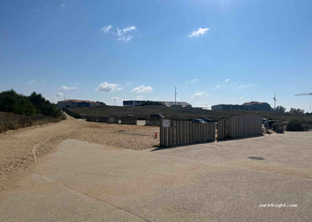 Le parking de la plage. Pour les minivans qui savent rester discrets. Pas d'interdiction à l'entrée du parking. Le parking avec vidéosurveillance..